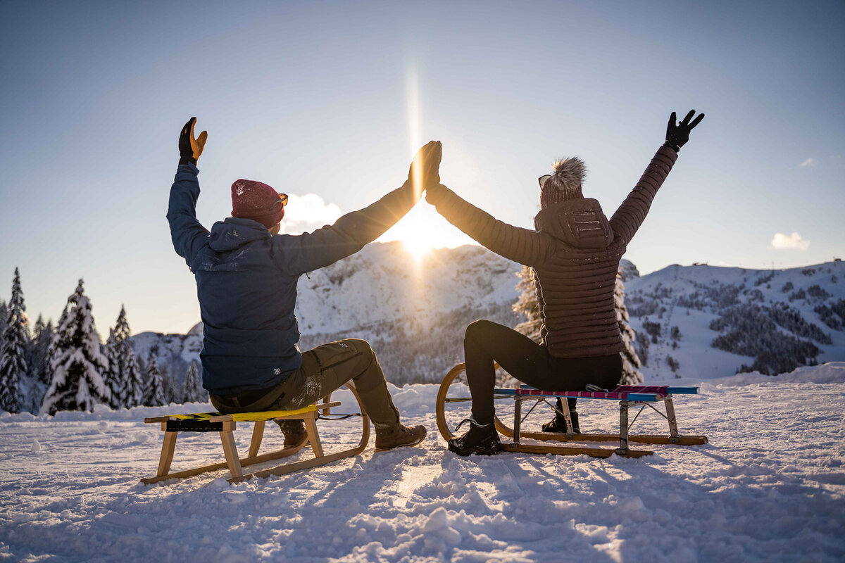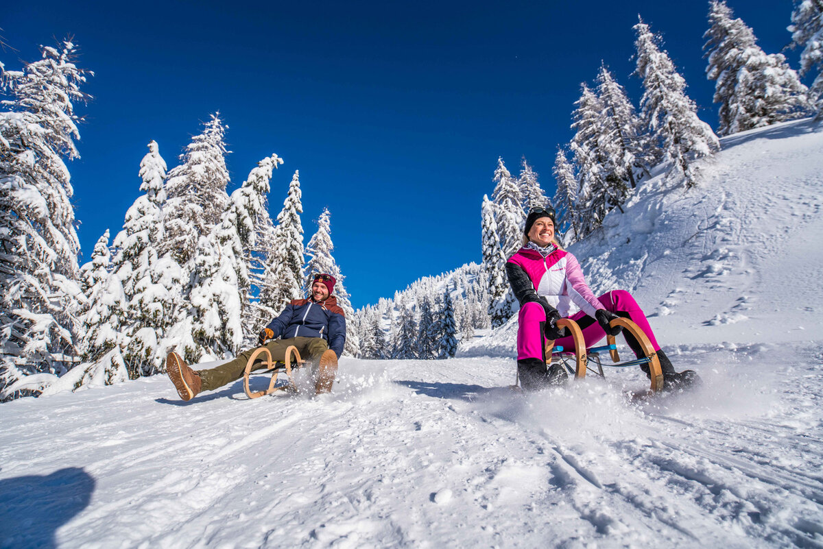 Tobogganing is also possible here on perfectly groomed, partly floodlit toboggan runs.